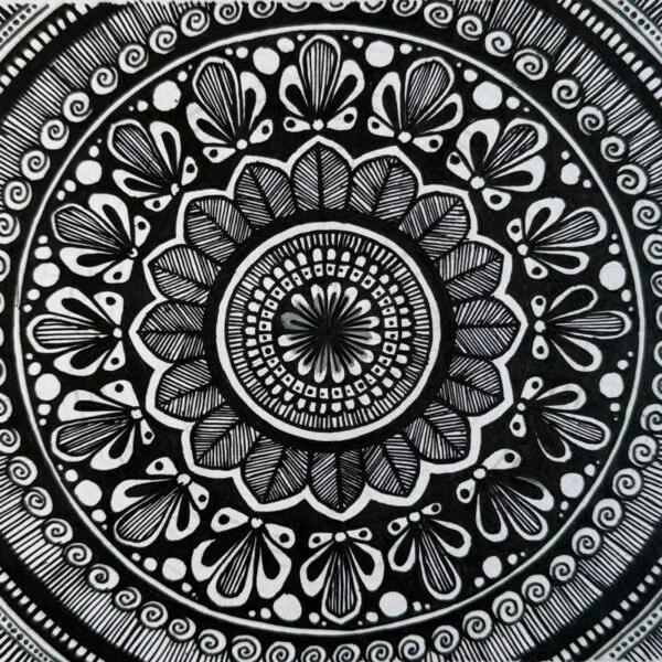 This one-of-a-kind artwork by 11-year-old artist Vaiga is packed with intricate mandala patterns.