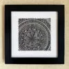 The artwork measures 4 X 4 inches without the frame, and 7 X 7 inches with the frame.